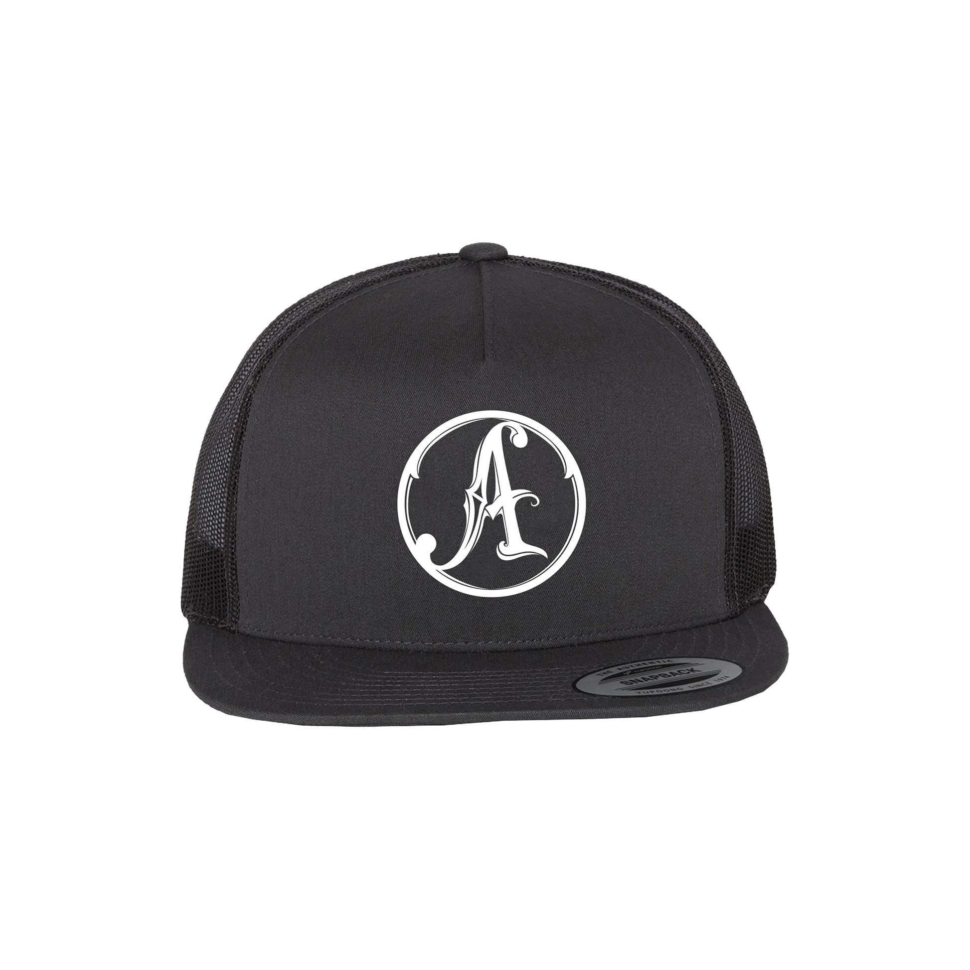 Snapback trucker hat featuring Apocalyptica "A" Logo embroidered on the front.