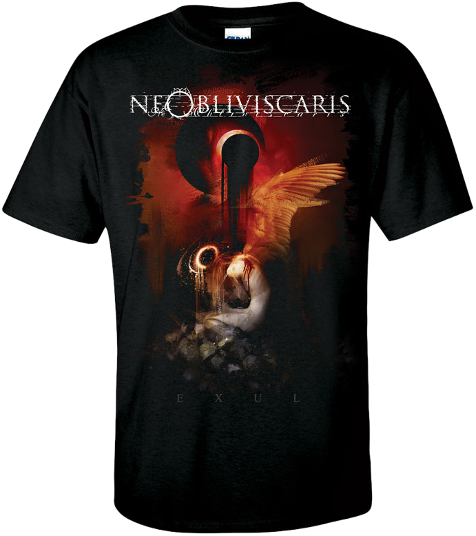 Unisex black t-shirt featuring Ne Obliviscaris "Fallen" artwork printed on the front.