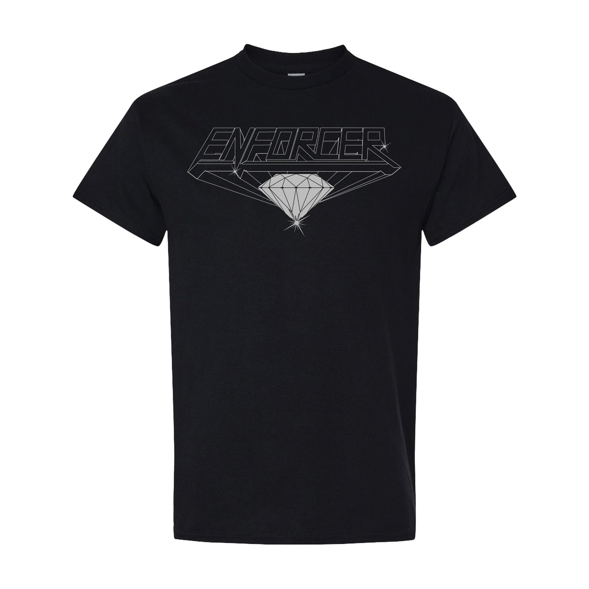 Unisex T-shirt in black featuring Enforcer “Logo” artwork printed on the front.